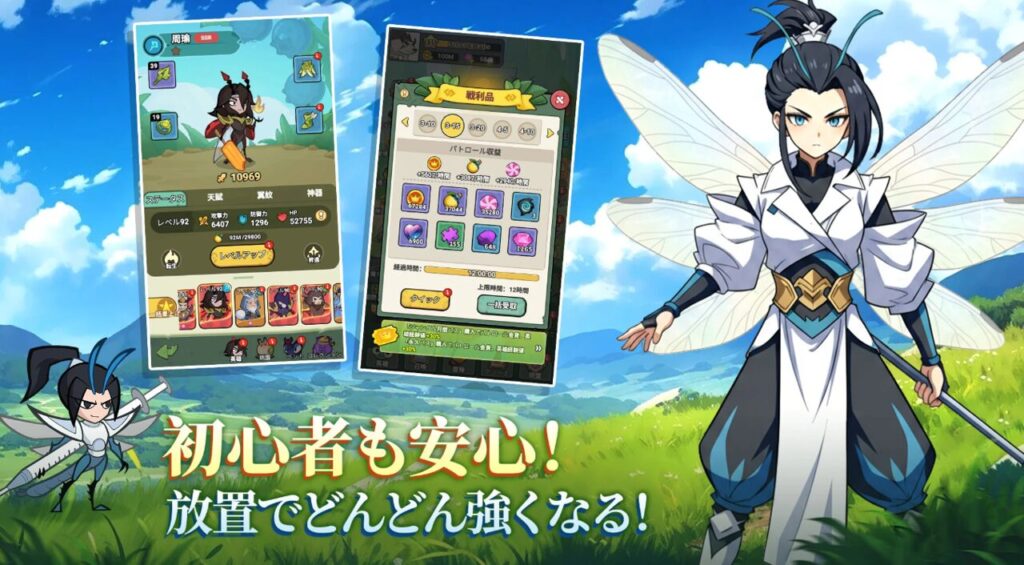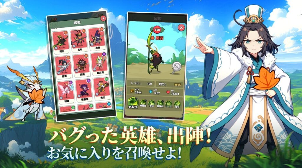 本作は、三国志の武将たちを“虫”として大胆に再解釈した、異色の放置系RPG。