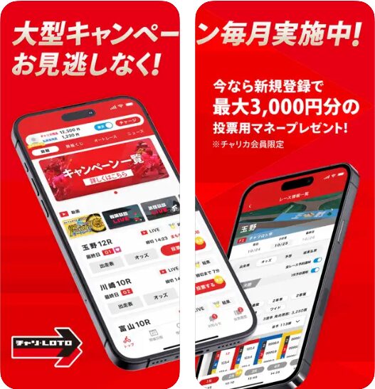「チャリロト」は、競輪やオートレースの投票がスマホ一つで手軽に楽しめる公式アプリです。