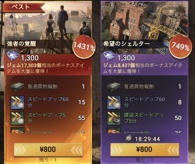 お得な課金パックも多数用意されており、ヒーロー育成用の経験値やヒーローバッジ、施設建設のスピードアップアイテムが入ったものだと、効率的にゲームを進められるので、よりおすすめです。