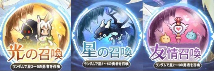 『ドット勇者』のガチャは、以下に挙げるガチャで★2~★5勇者が手に入ります。