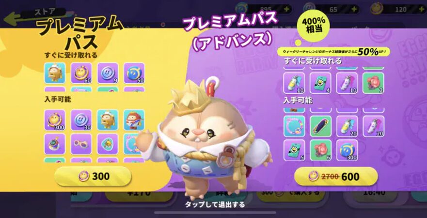 『Eggy Party』には、少額で購入できる課金パックが用意されており、お得にアイテムを入手することができます。
