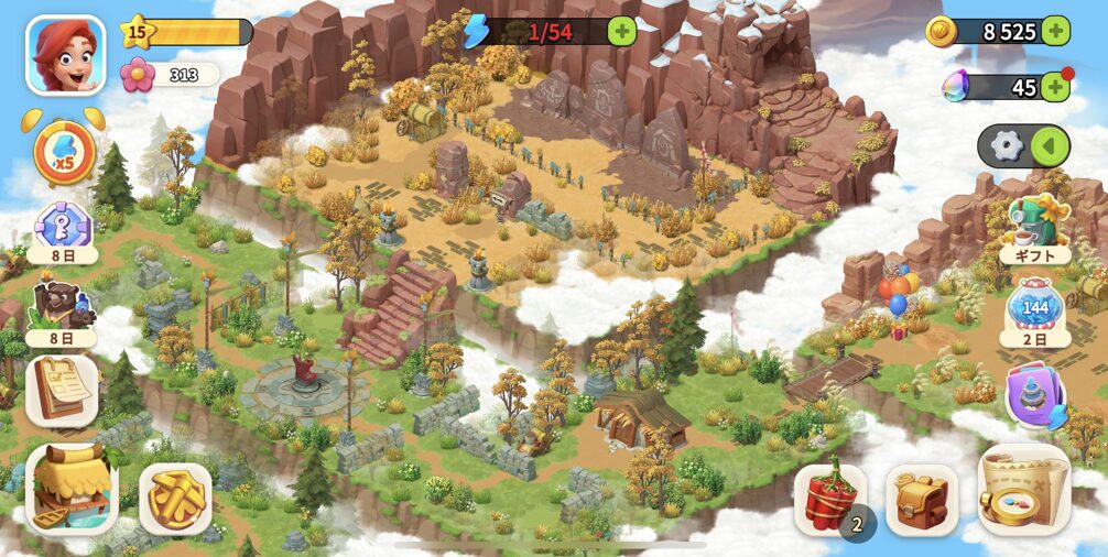 序盤は、行動範囲が狭くできることが限られていますが、タスクを進めると徐々に行動できるエリアが広がり、育てられる農作物や動物の種類も増えていきます。