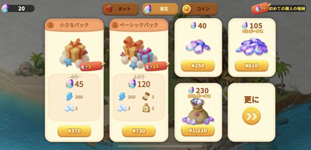 宝石だけでなくアイテムやエナジーが付いてくるパック商品は、とてもお得なのでおすすめです。