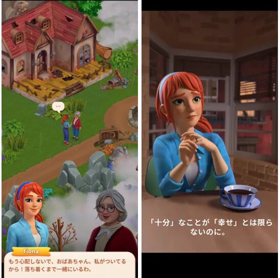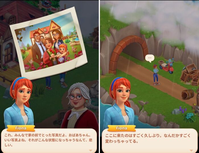 農場と庭のリフォームを軸に、爽快感あふれるパズルゲームで素材を集めながら、フィオナのハラハラドキドキの冒険ストーリーが展開します。