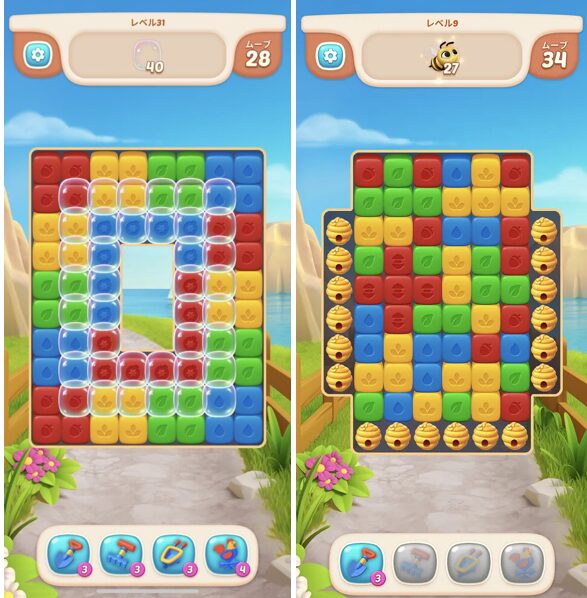 ストーリーと農場経営が付いたトゥーンブラストですね。ロケットの向きがランダムじゃないので難易度は低めです。課金したら楽にクリア出来ますが一切課金しない、アイテムも使わない縛りプレイがやっぱり楽しいです。ライフが無くなったらおとなしくログアウトするのがベストです。広告も無くサクサク進むのでライフゼロという止め時がある分逆に良心的だと思います。