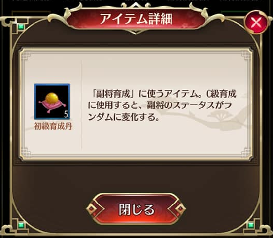 | 育成丹 | キャラのステータスを上昇させる |
