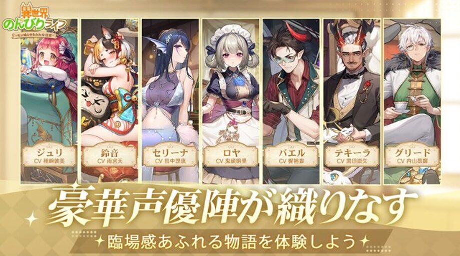 キャラクターは豪華声優陣によるフルボイスで、異世界のゆるふわ感をより一層楽しむことができそうです!