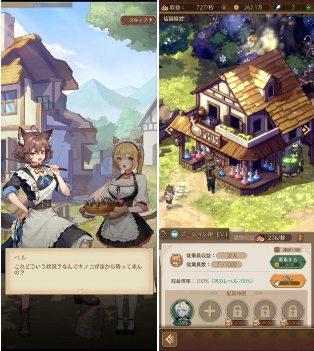 僕は初めて2日の初心者です。女の子可愛いし、イケおじはちゃんとストーリーに入ってるし、モブも喋るし、日本語しっかりしてるし、ストーリーは聞いてて超楽しい。 よくできてると思う。広告入らないし、課金必須でもないし、半日もほっとけば2時間遊べるくらいの資金貯まるし、まじで気分は異世界スローライフ。