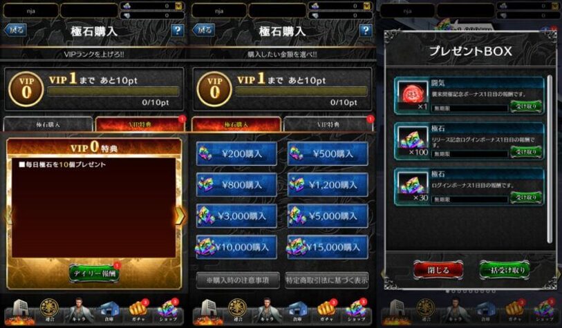極石は、ガチャやキャラクター強化などに使用していくので、良いスタートを切りたい方や効率よくゲームを進めたい方は課金することをおすすめします。