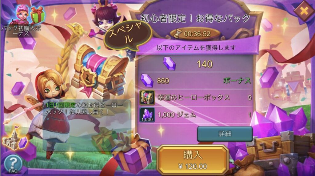 120円で購入できるパックもあり、十分なアイテムを入手することができます。