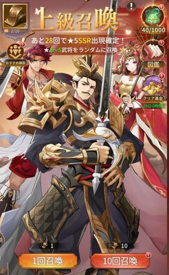 『幻・三国決戦~本格英雄バトル~』には、ログインギフトとして2320無料ガチャを引くことができます。
