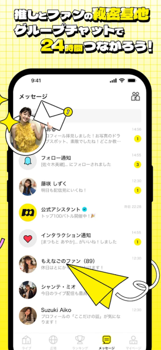 ニッチな趣味でも、映像を介して熱量高く語り合えるのがこのアプリの強み。ファンクラブ機能やグループチャットを活用して、日常ではなかなか出会えない同志を見つけたい人にぴったりです。 -