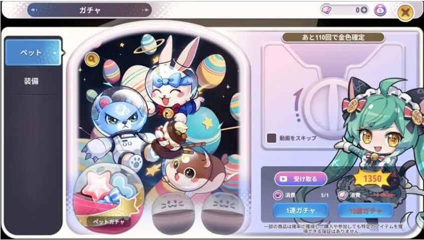 『晴空物語 もふもふランド』では、主にペットや装備が手に入ります。