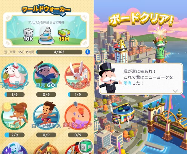 ニューヨークやロンドンなど、世界各地の有名都市を旅行できるところも魅力で、各地の名所を観光しながら総資産を増やしていきましょう!