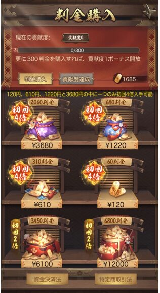 また120円で購入できる「新人ギフト」は、SR武将一人と大量のアイテムをお得に入手可能なのでおすすめです。