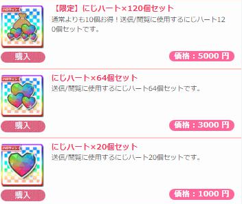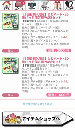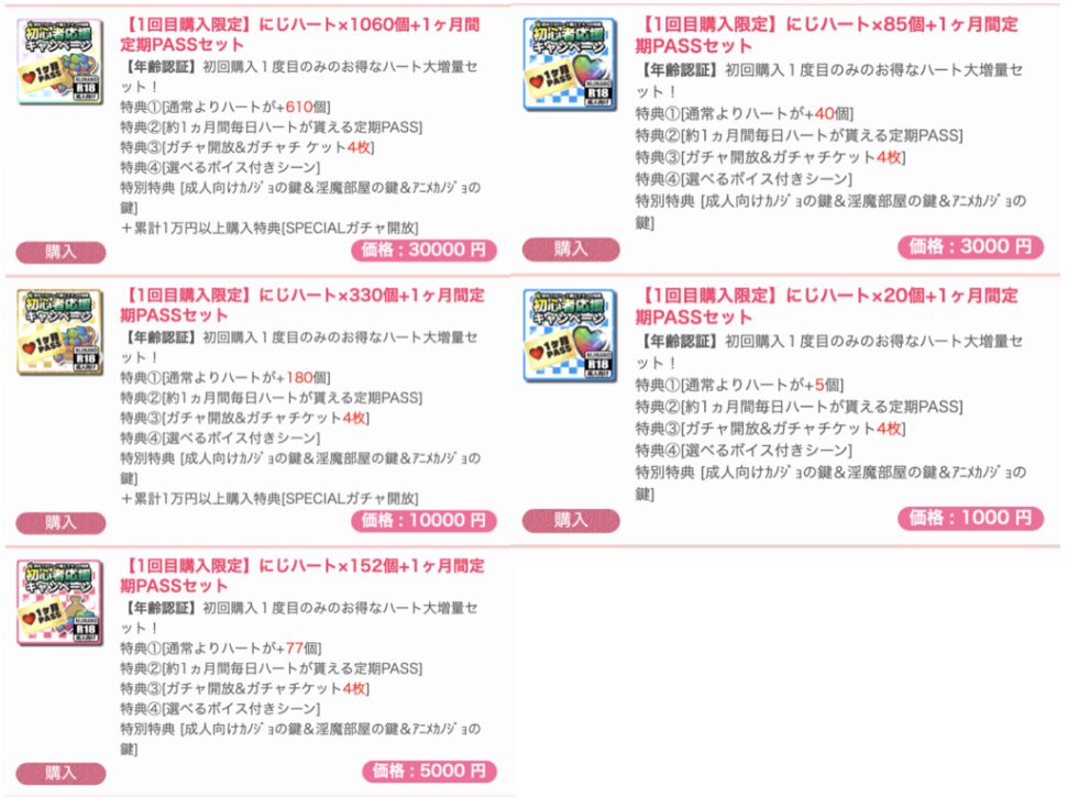 にじカノのアイテム金額は、最低1,000円から最高30,000円まで幅広く用意されています。
