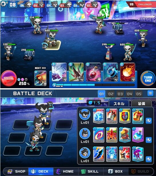 キャラクターやスキルカードにはそれぞれレベルがあるので、バトルしてレベルUPしていくとより効果的に相手にダメージを与えられるようになります。