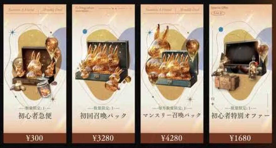 | 初回召喚パック | ・モノロー20個獲得 ・ガチャを効率的に引きたい方におすすめ |