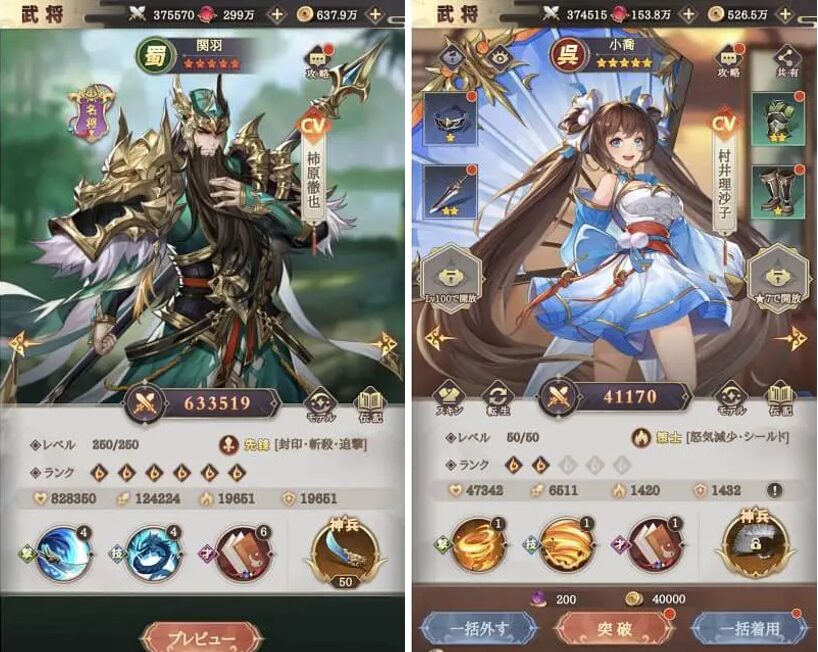 「創星神界」というファンタジー世界に生きる武将たちがたくさん登場し、男性キャラクターはかっこよく、女性キャラクターは可愛らしく仕上がっています。
