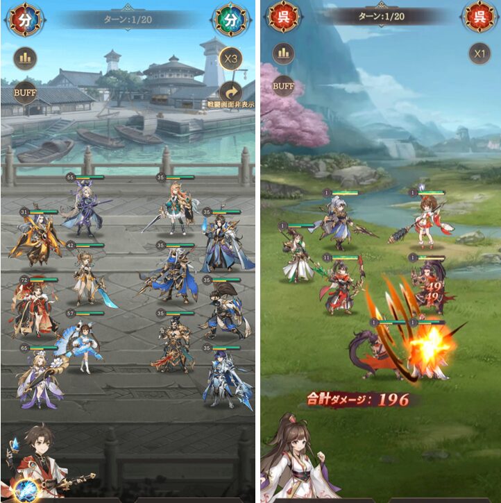 三国志系のゲームと聞くと、髪の毛や髭の一本一本までよりリアルに描いた緊張感漂う3Dグラフィックを思い浮かべますが、『三国志アナザー 星将の願い』はアニメ風に描かれており、全体的に柔らかい印象を受けるキャラクターデザインになっています。
