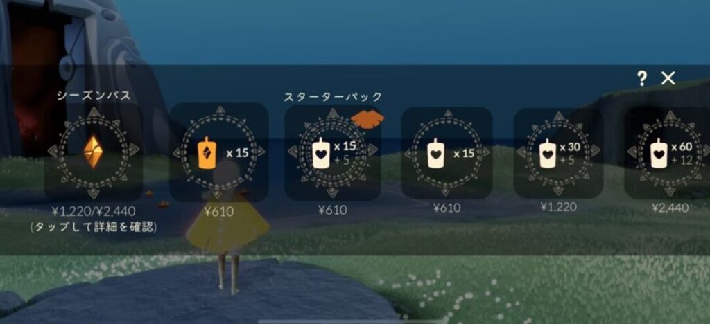 もし課金するとしたら「スターターパック」がおすすめで、キャンドルの他にも限定ケープも付いてくるお得なパックになっています。