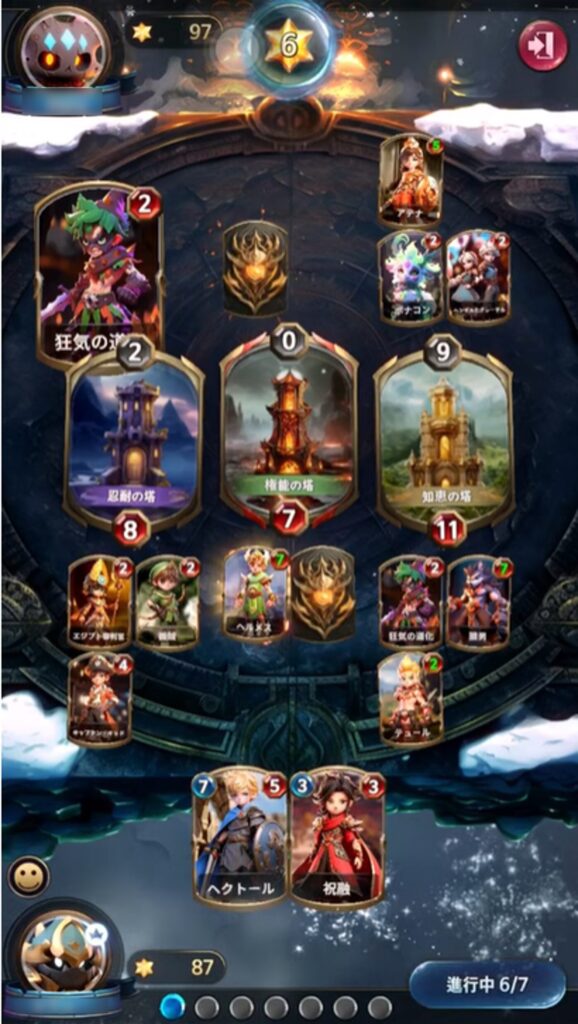 7ターンで決着がつくので、限られたターンの中でいかに自分に有利なカードを出せるかが重要になります。
