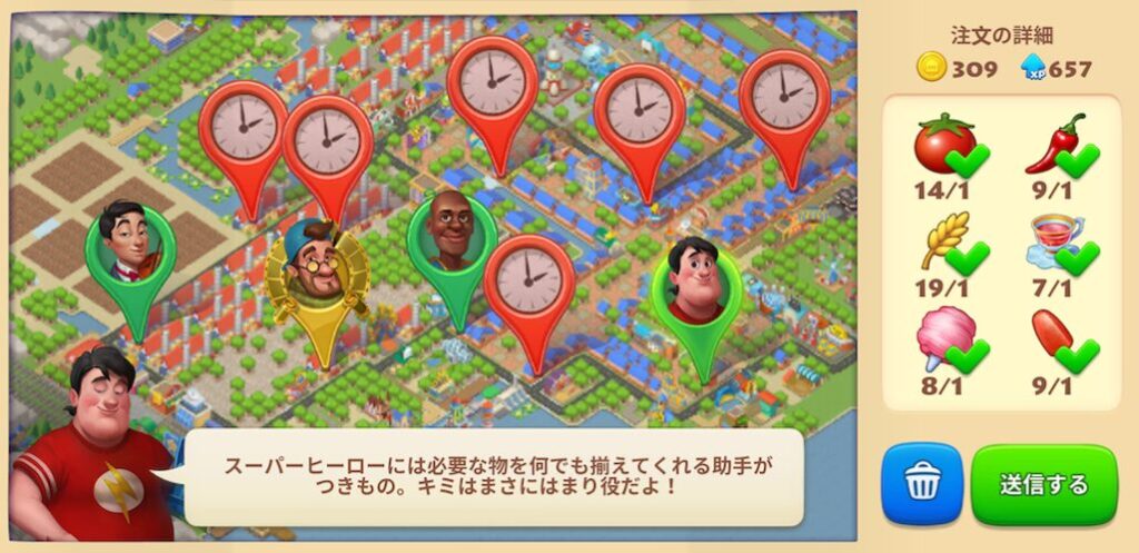 登場するキャラクターたちはみな個性的で、欲しい施設の提案や困りごとの相談など、様々な要望が寄せられるようになります。