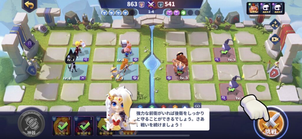 序盤は適当な配置でゴリ押せますが、ゲームを進めるにつれて勝てなくなってくるので、前衛後衛をしっかり考えて配置してみてください!