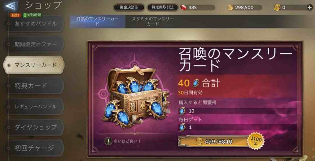 購入すると30日間にわたってヒーローの召喚に役立つ「レア召喚クリスタル」を受け取ることができます。